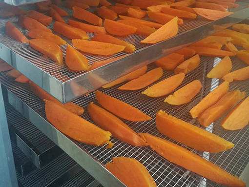 紅薯烘干要準(zhǔn)確掌握好紅薯的干度,可用口嚼時軟而綿,這樣硬度為適宜。如果烘干過干,吃時嚼不爛,影響其品質(zhì),但烘干不到位,水分多,容易生霉腐爛。根據(jù)使用我司小型紅薯干烘干機(jī)的客戶反饋的情況,紅薯干的烘干溫度不宜超過55℃,要分階段烘干,中間要讓紅薯干回軟。